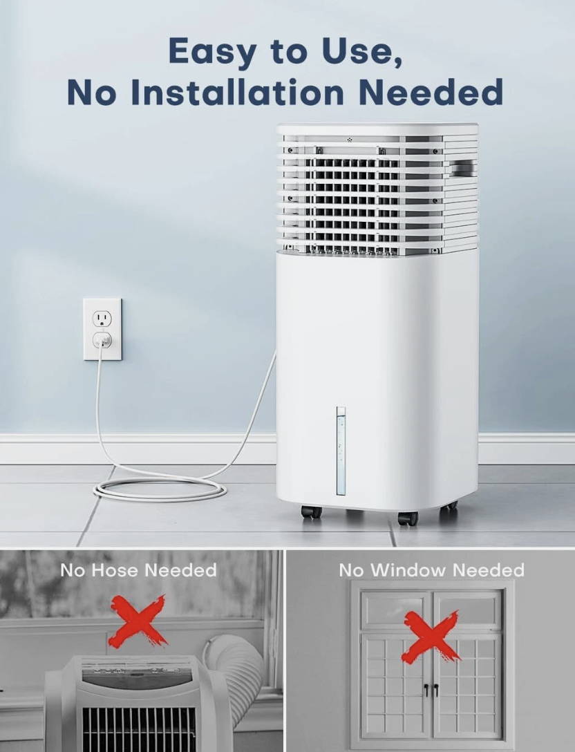 No hose or window setup required—just plug and enjoy cool, clean air instantly.