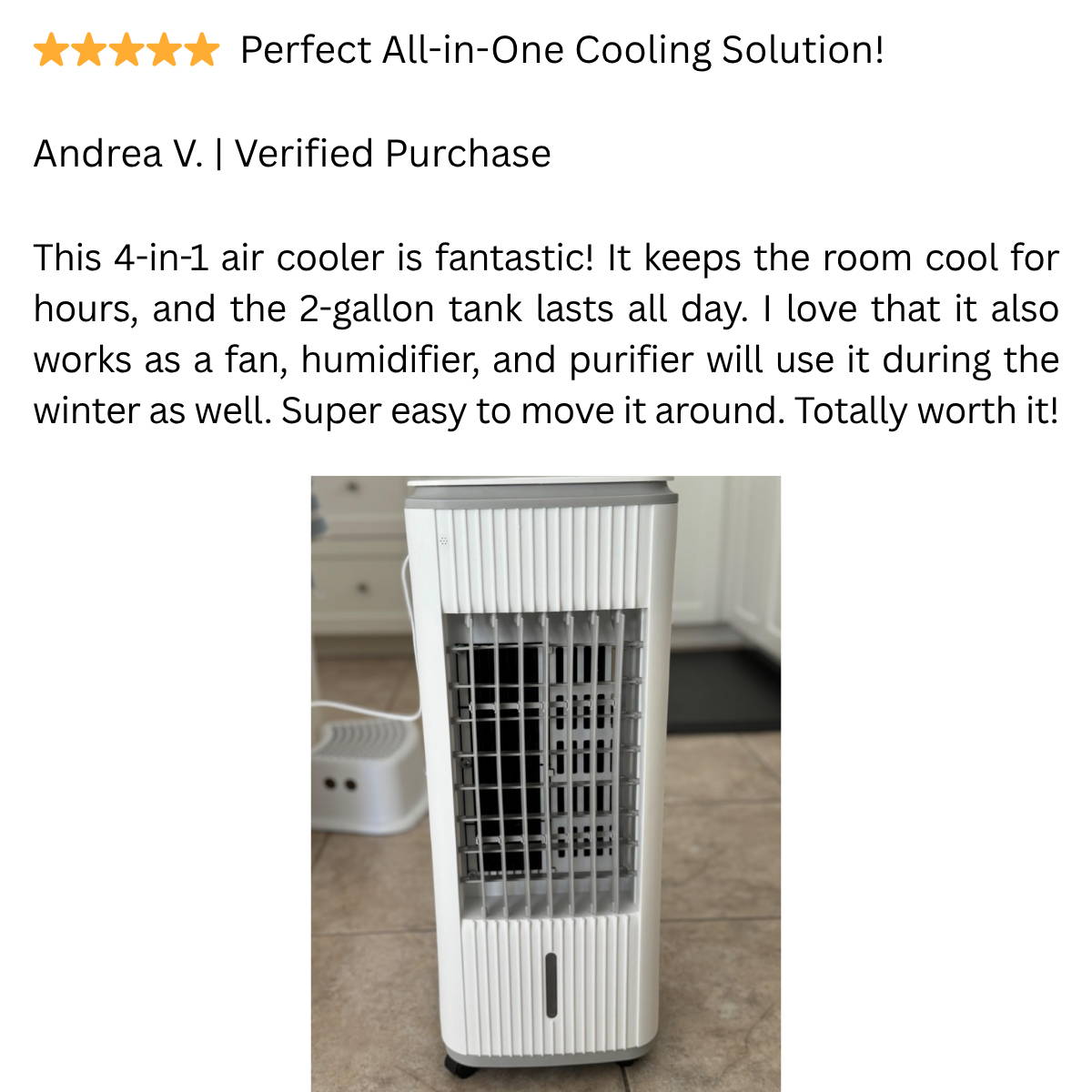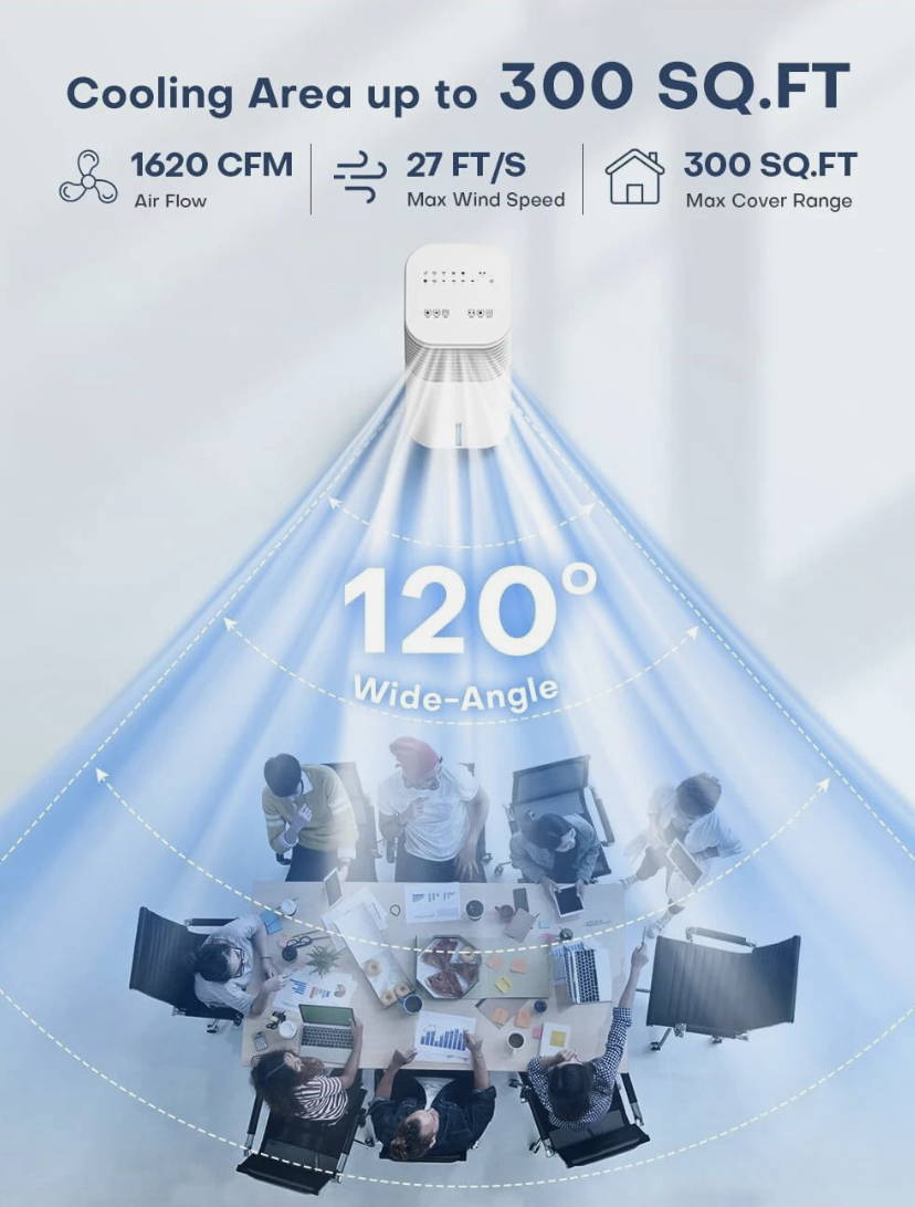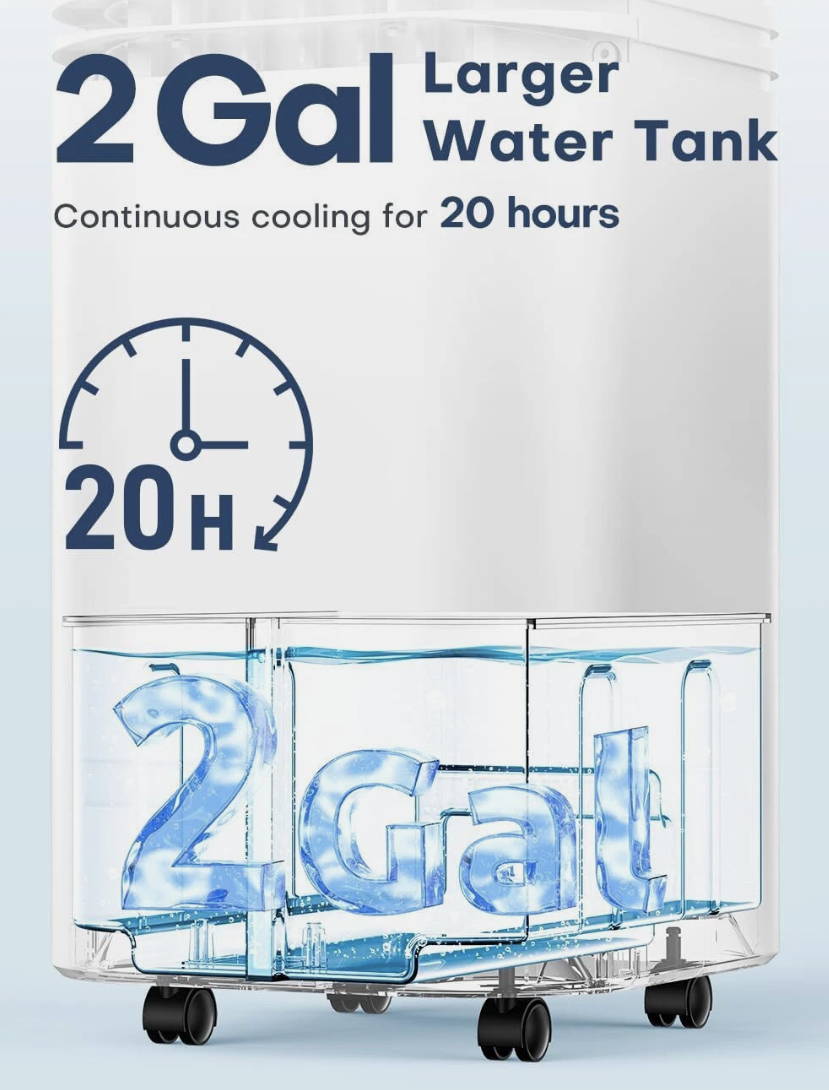 With4 cooling modes, 3 fan speeds, and a massive 2-gallon tank for up to 20 hours of continuous use, it’s perfect for bedrooms, offices, or living rooms up to 300 sq. ft.