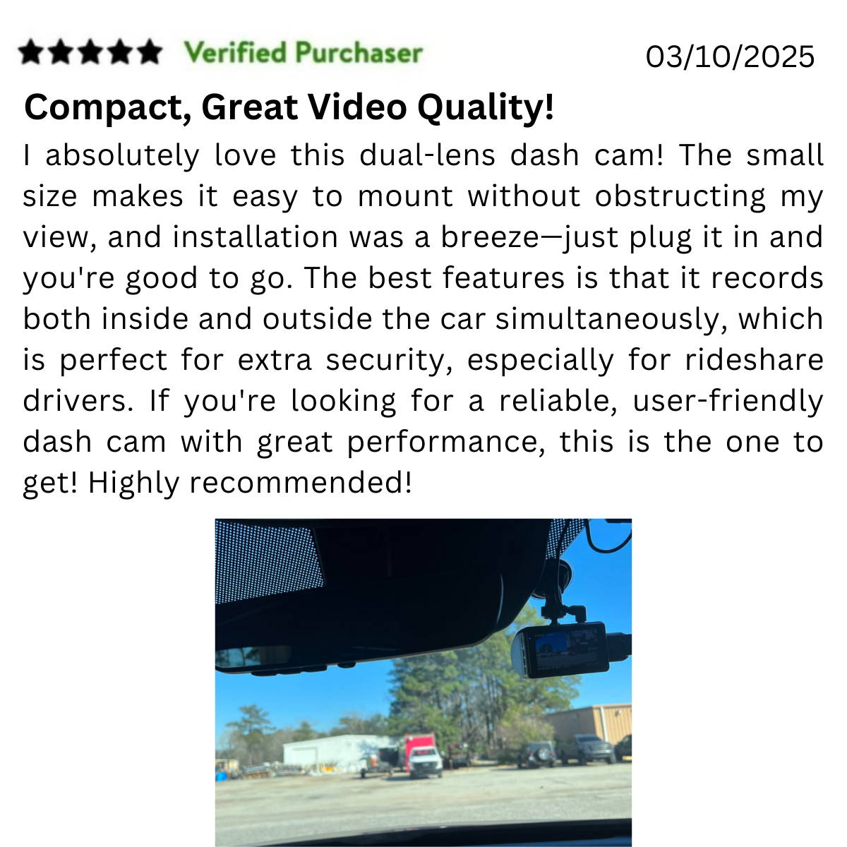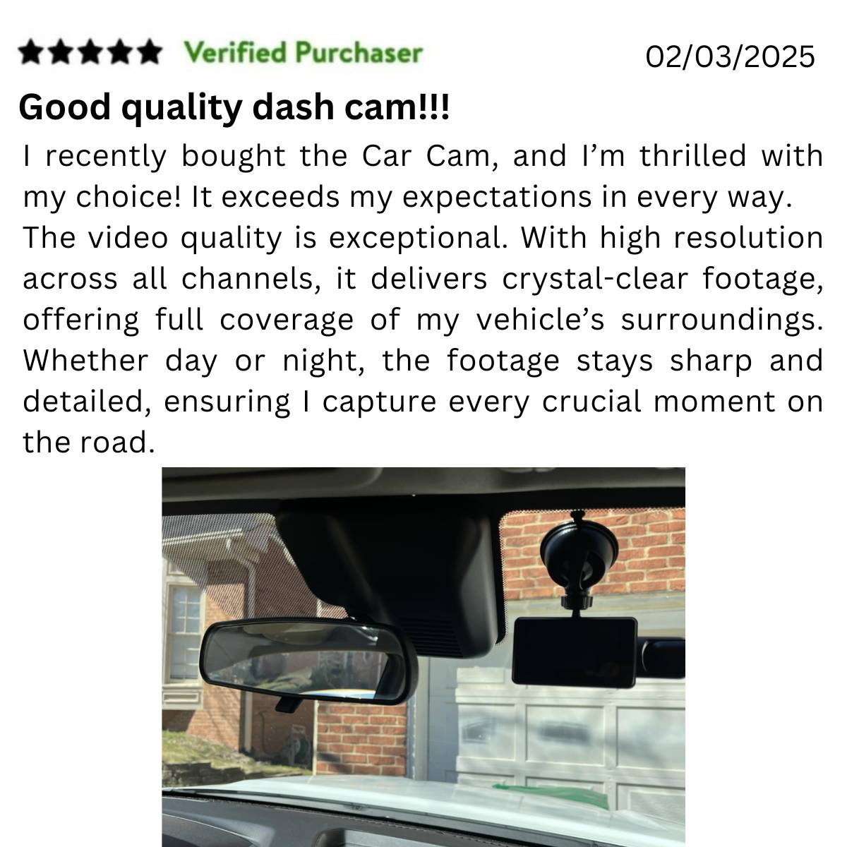 Simple setup with a step-by-step guide. Just insert a microSD card (not included), connect to a power source, and the dash cam will automatically start recording when the car is turned on, saving footage before shutting down when the engine is off. For detailed instructions, download the User Guide from the product page.